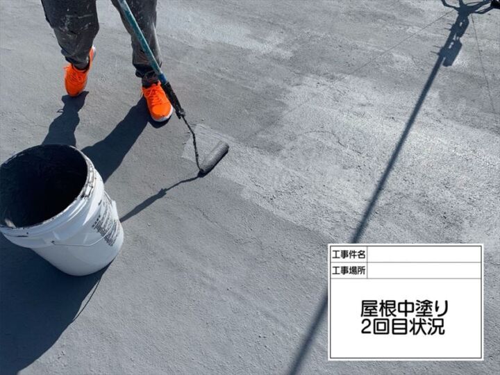 土浦市:コンクリート屋上の亀裂を埋め防水塗替、台風前に一安心