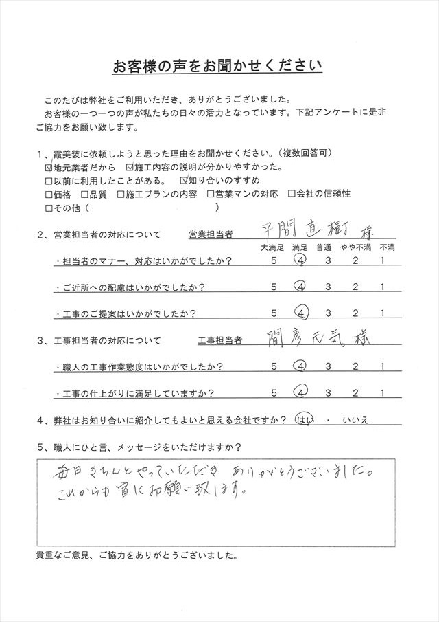 - 工事の仕上がりに満足していますか?
