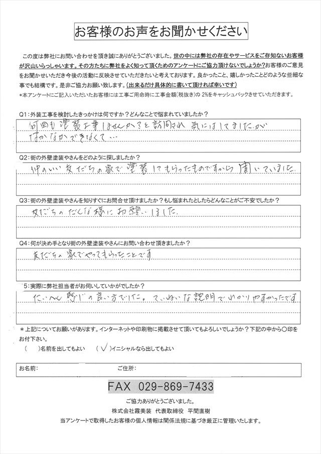 友人宅を塗装した地元塗装業者を紹介してもらいました つくば市