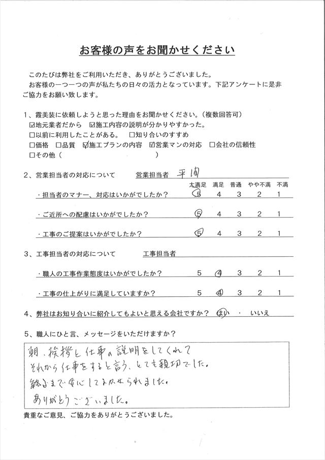 - 霞美装に依頼しようと思った理由をお聞かせください。