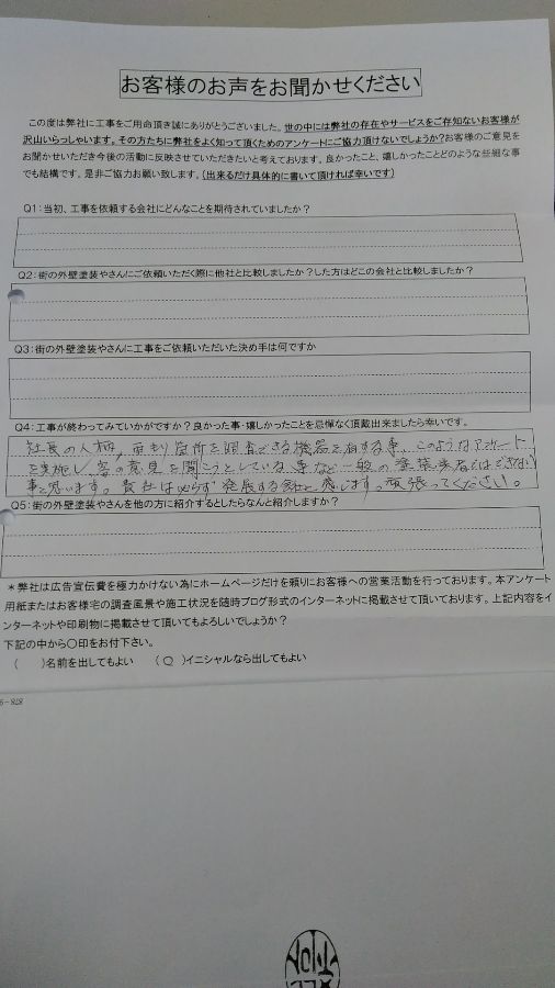このようなアンケートを実施し、客の意見を聞こうとしている事など、一般の塗装業者ではできない事と思います。