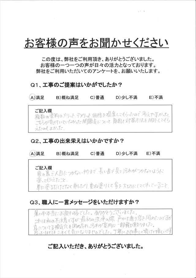 土浦市で前回7年前に塗装されたお客様のアンケートです