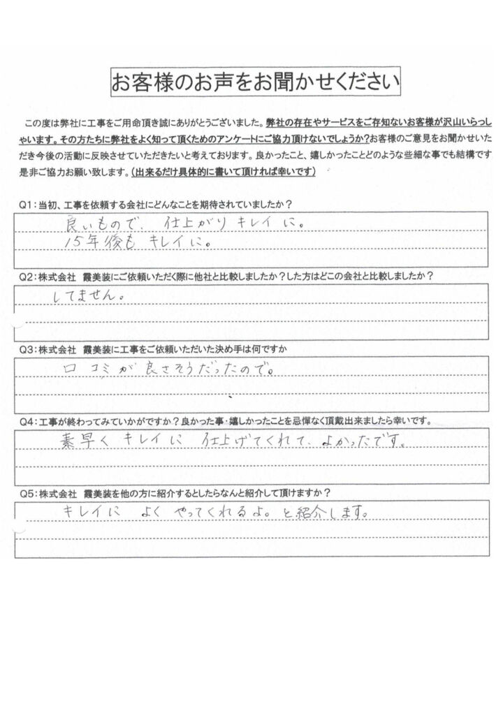 15年後もキレイに。 - 株式会社霞美装にご依頼いただく際に他社と比較しましたか? した方はどこの会社と比較しましたか?
