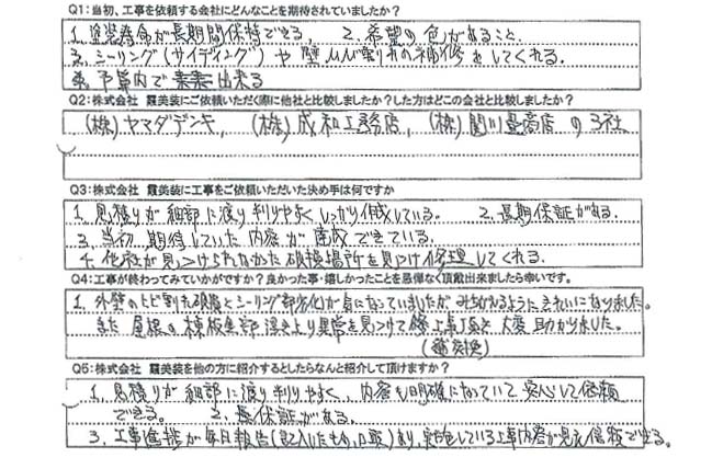 - 株式会社霞美装に工事をご依頼いただいた決め手を教えてください