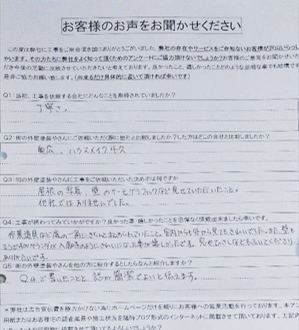 外壁塗装でお願いしたけれど、屋根の様子も高所カメラで見ていただき、対応がしっかりしているなと感じました。