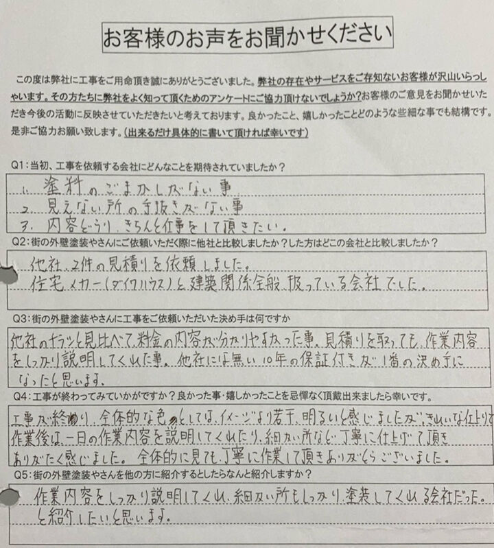 塗料や作業内容についてのご信頼、そして10年保証を決め手にしていただけたこと、大変光栄です。