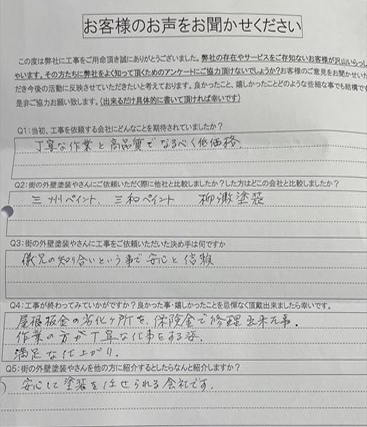 - 安心して塗装工事を任せられる信頼できる会社だとお伝えしたいです。