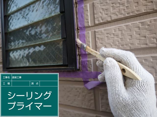綺麗に掃除をしたあとは、プライマーをシーリング部に塗布していきます。
