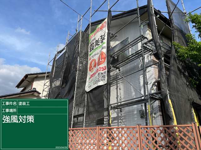 施工期間中に強風注意報が出ました。