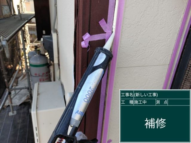 雨漏り防止のために開口部や化粧幕板と外壁の境目にシーリングを施工していきました。