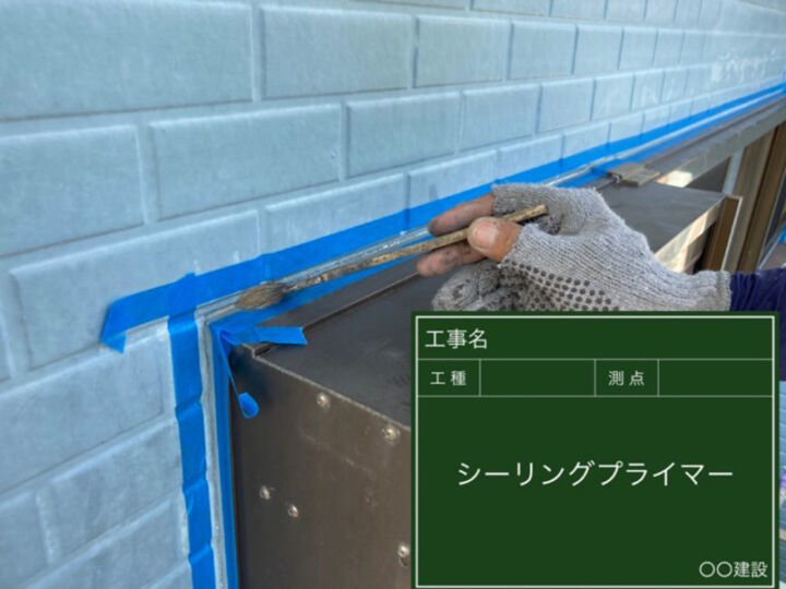下地とシーリング材の密着性を高めるため、接着剤の役割を果たすプライマーを塗布していきます。塗り残しの無いように丁寧に塗り込みます。