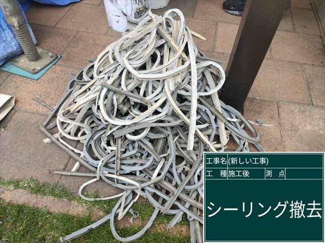 撤去したシーリングは集めて現場が散らからないようにしていきます。