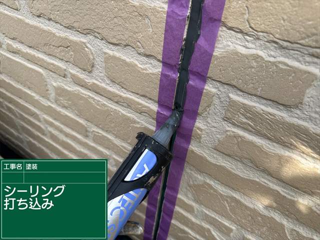 プライマーを塗布したら、オープンタイムという、プライマーの接着効果がある時間内にシーリングを打ち込んでいきます。