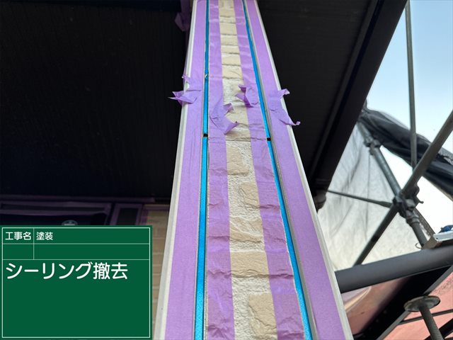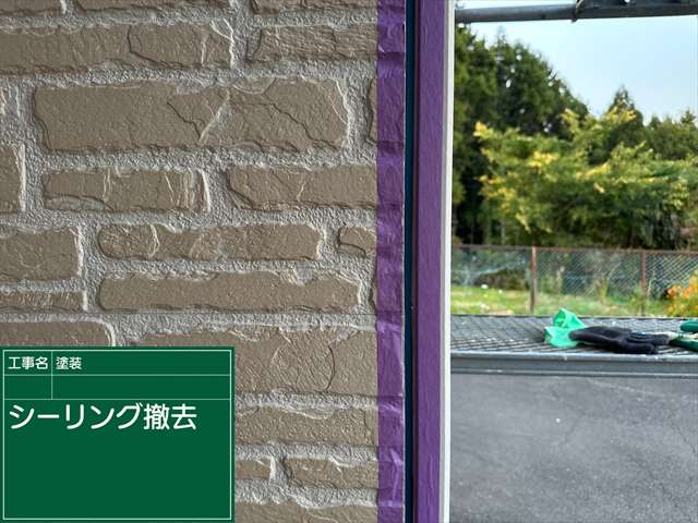 養生が終わったら、劣化したシーリングを撤去する作業です。