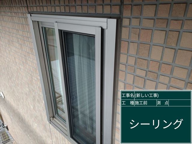 小美玉市現場、シーリング増し打ち施工前のサッシ周りです。