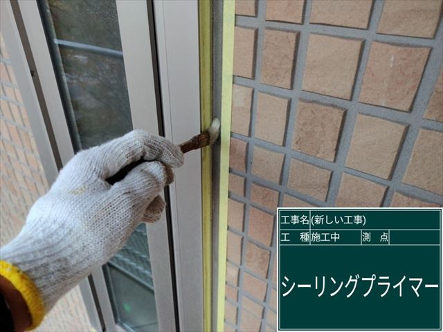 マスキングテープで養生をしたら、撤去はせずにプライマーを塗布していきます。