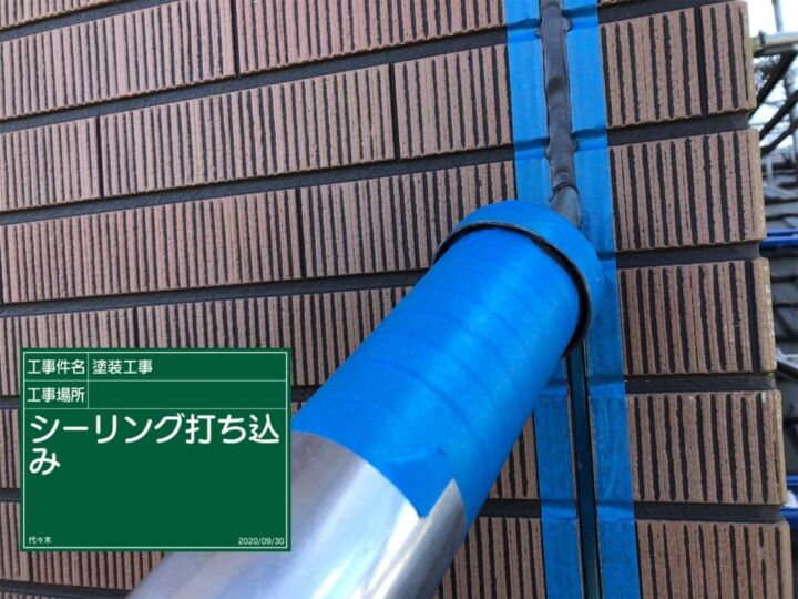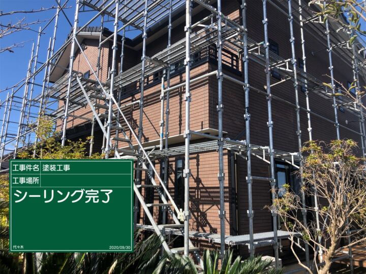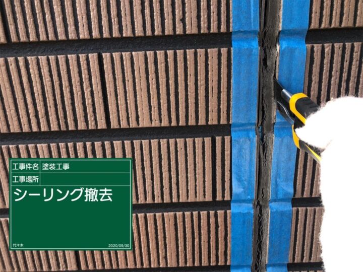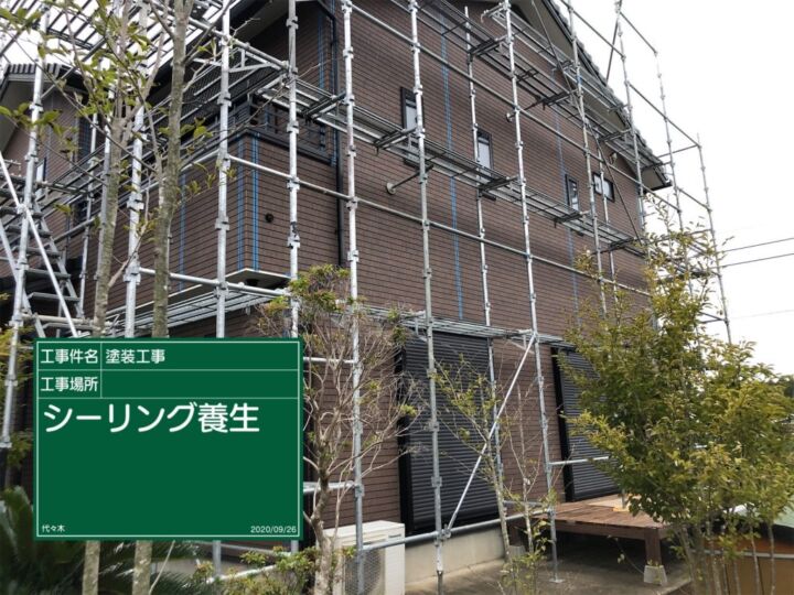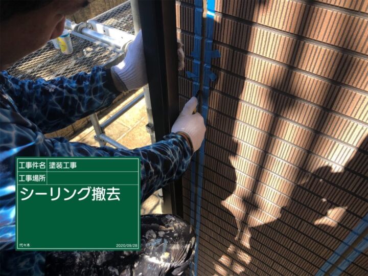 シーリングを打ち替える箇所、全ての養生工事が終わりました。
