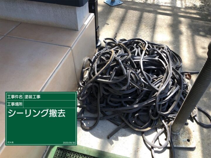 取り除いたシーリングはそのままにせず、一か所にまとめます。常に現場をきれいな状態にすることを心掛けて作業を進めております。