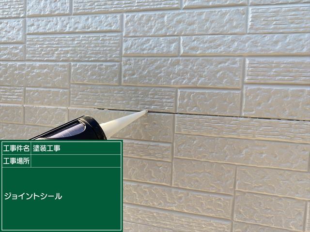 塗装前におこなった 窯業系サイディング外壁の隙間を埋めるジョイントシーリング の様子です。
