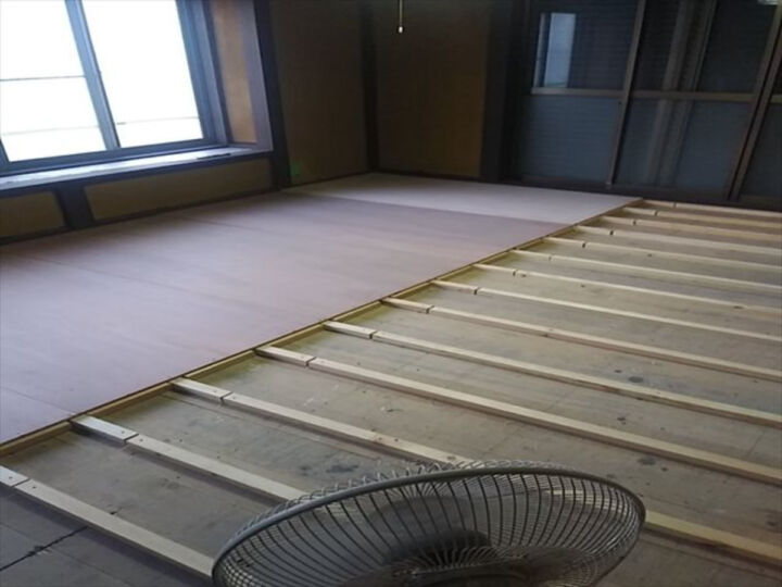 和室は畳を外すと、フローリングの床より低くなっているのでその分段差をなくす作業を床上げといいます。