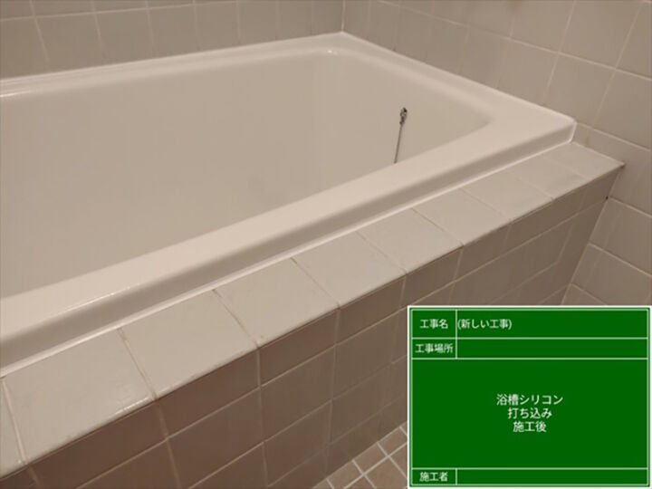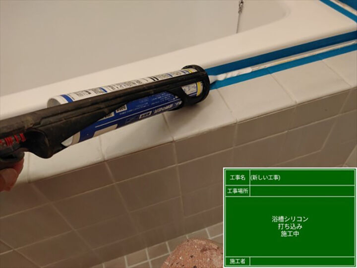 浴槽と浴室タイルを繋いでいるコーキングを増し打ちして補強していきます。
