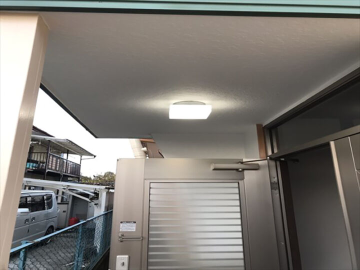 玄関ポーチの照明は、雨の日に水がたまり漏電もしていましたが、点検・手直し修理をして無事に使えるようになりました。