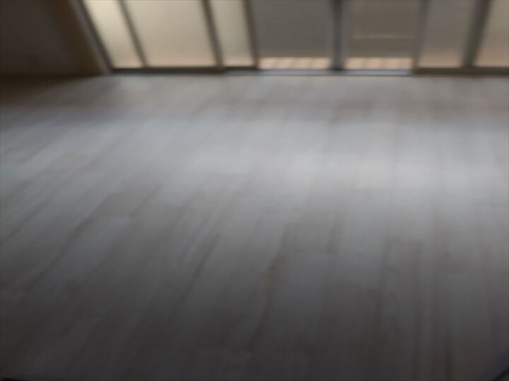 フローリングのような柄のクッションフロアで、白を基調にしています。