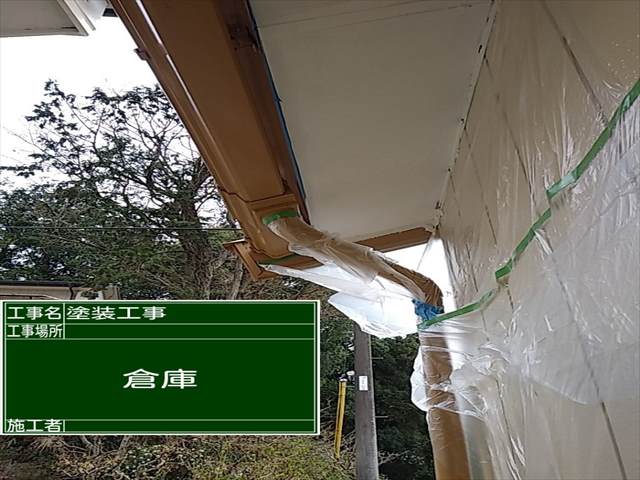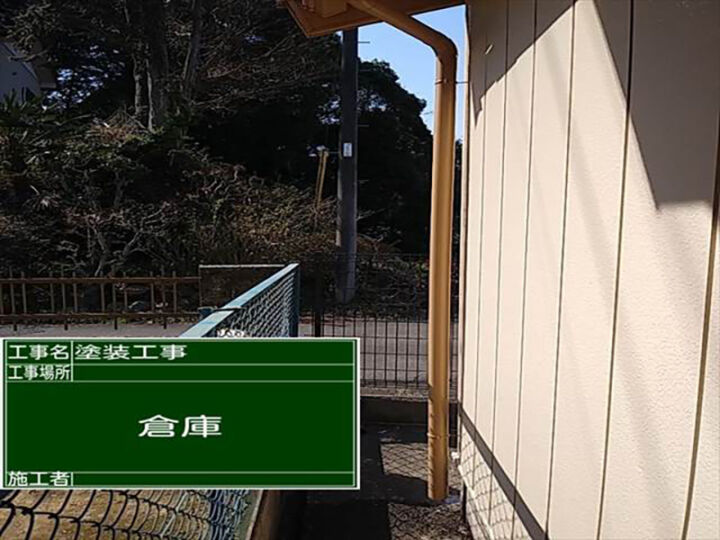 つくば市の空き家再生現場、倉庫の塗装が完了した様子です。
