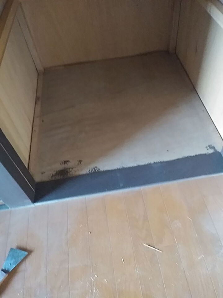 同じく土浦市の空き家リフォーム現場、クローゼットの床板を交換します。