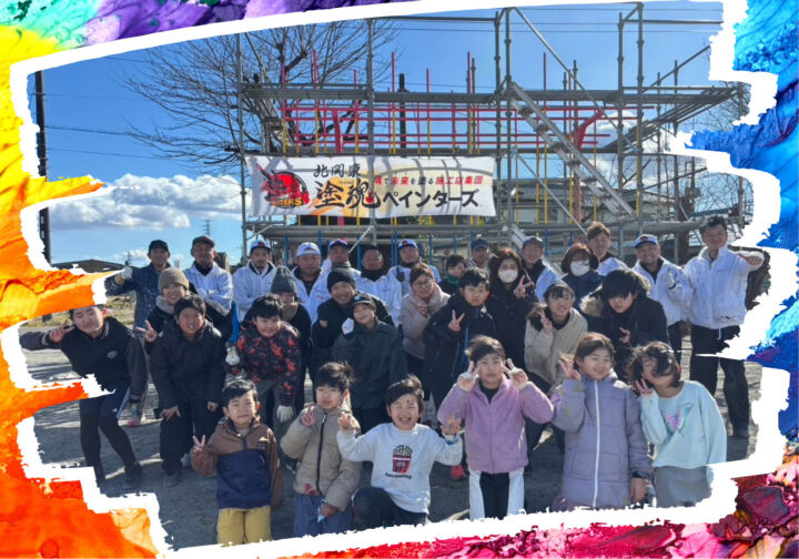 塗装作業は、私たちプロの職人だけでなく、保護者の方々や元気いっぱいの子どもたちも一緒に参加!