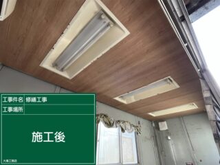 雨漏りで傷んだ断熱材を剥がして新しいものと交換したあと、木目調の天井に仕上げました👷‼️