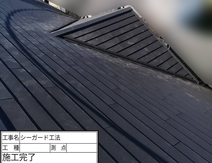 通常の屋根カバー工法との違いをお客さまに納得いただいた上で、シーガードを施工し、ボロボロのコロニアル屋根を補修していきました‼️