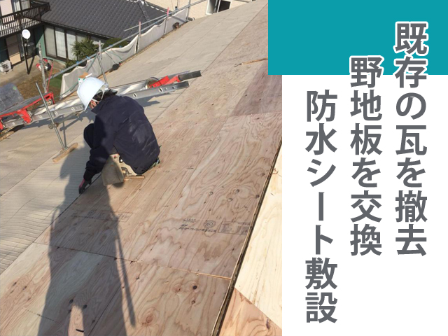 まずは古い瓦をすべて撤去し、野地板を交換しました🏠️