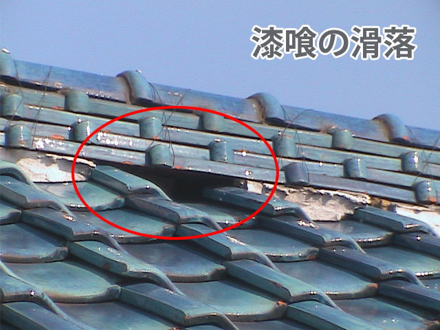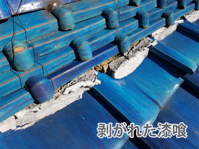 漆喰が欠落している部分があるので、今回の現場の屋根は非常に危険な状態です⚠️
