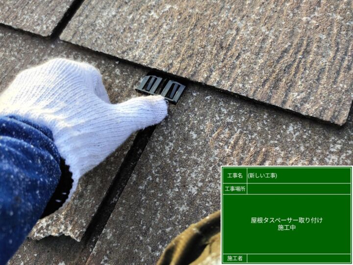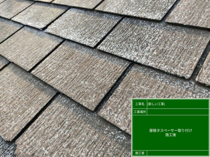 縁切り作業を行った証となるタスペーサーですが、写真のようにタスペーサー自体が屋根に隠れてしまう為、目立たず、塗装もなじむためきれいに仕上がります。