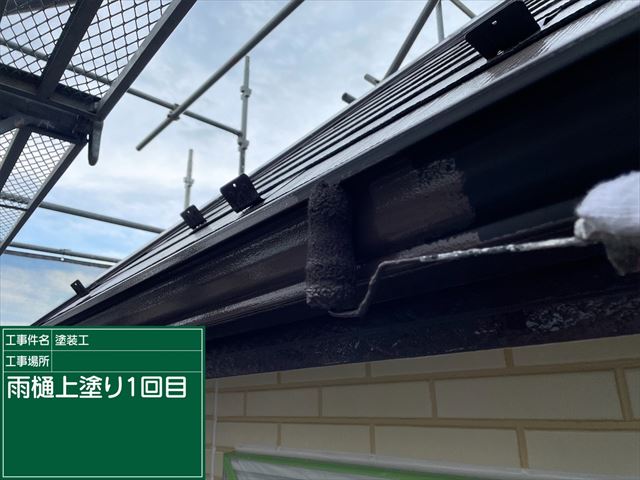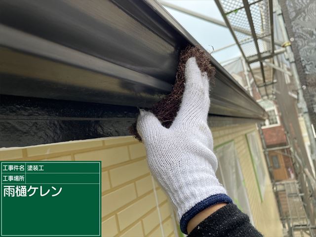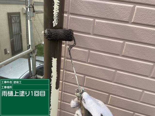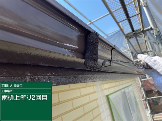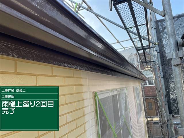 雨樋もケレン作業をおこない、上塗り塗装を2回おこないます。