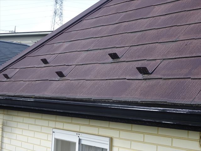 新築から25年の年月が経過したスレート屋根は色褪せて雨垂れの跡があちこちにありました。