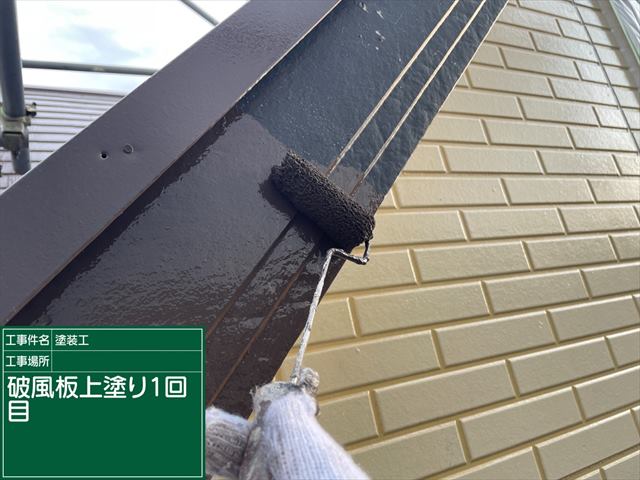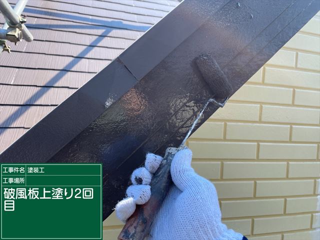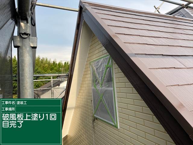 石岡市の屋根塗装現場、こちらは破風板の塗装です。
