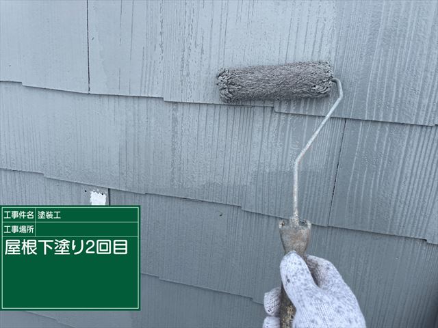 痛みがある場合は下塗りをおこないますが、石岡市の屋根塗装現場では上塗り2回ですみました。