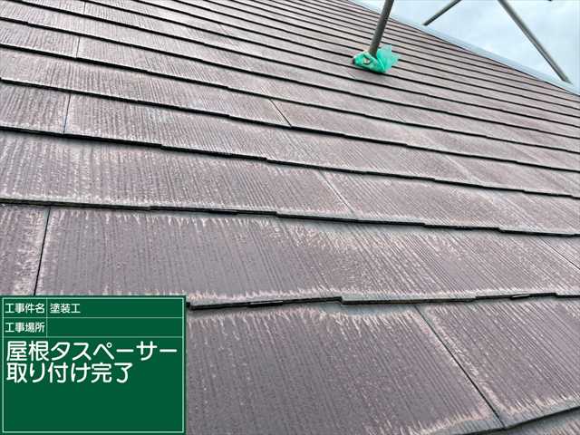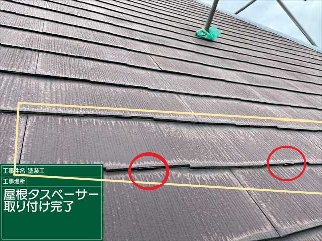 屋根の塗装をおこなうまえに、タスペーサーの挿入をしていきます。