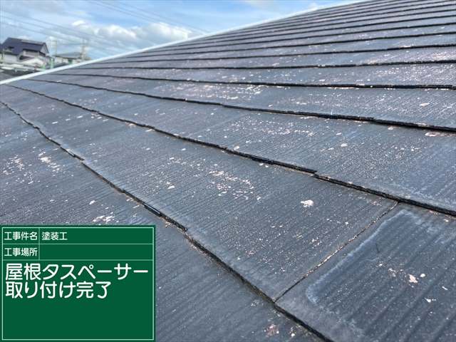 タスペーサーによる縁切りは、スレート屋根の塗装にはかかせない工程です。