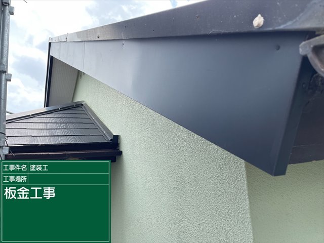 石岡市の屋根塗装現場、屋根板金にも細かな作業があります。