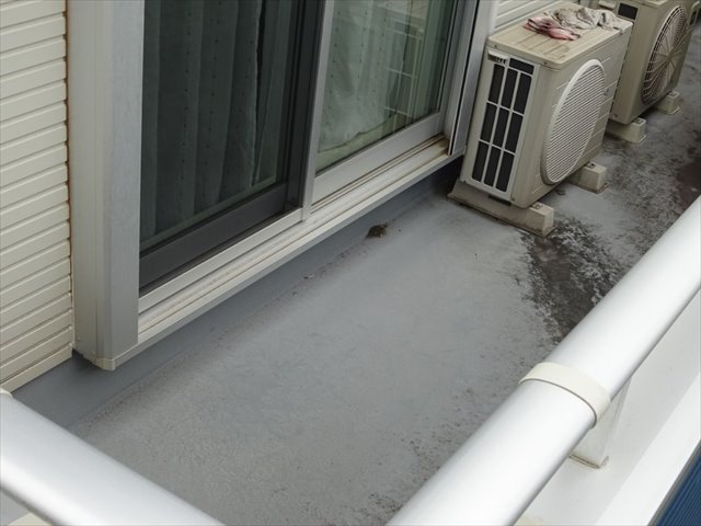 築11年の石岡市屋根塗装現場、ベランダはFRP防水です。