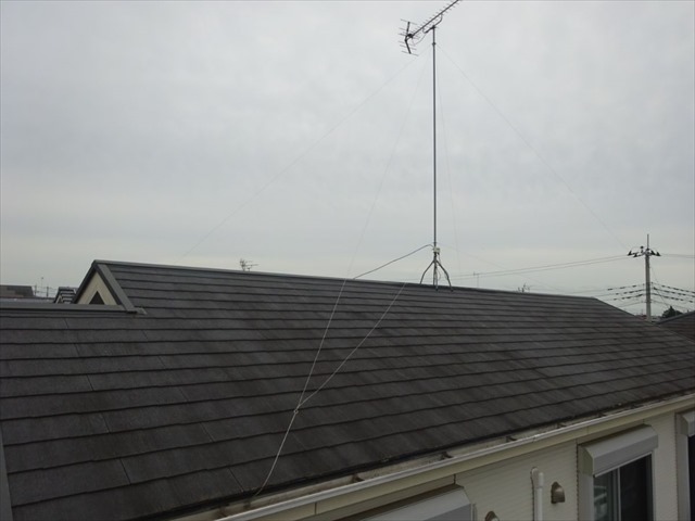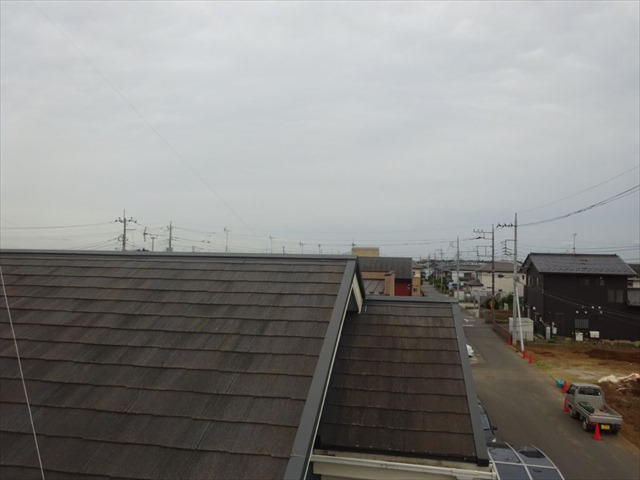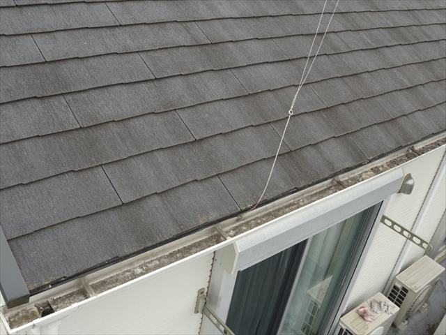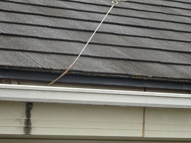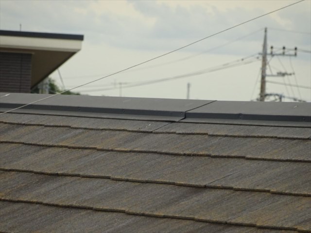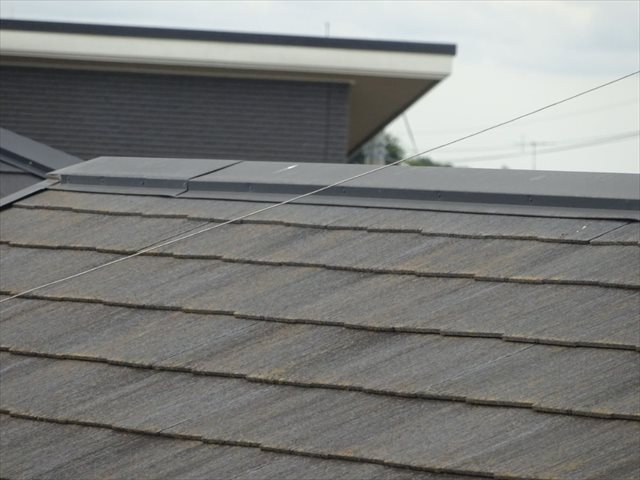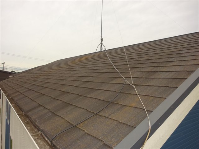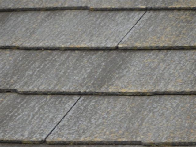 石岡市のスレート屋根、黒くなっているのは雨が流れたあとですね。