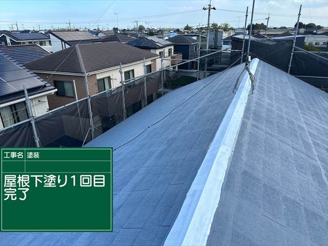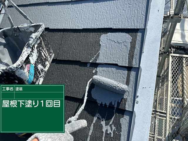 屋根塗装開始!下塗り2回、ダブルの遮熱塗装で熱さに強い家に!