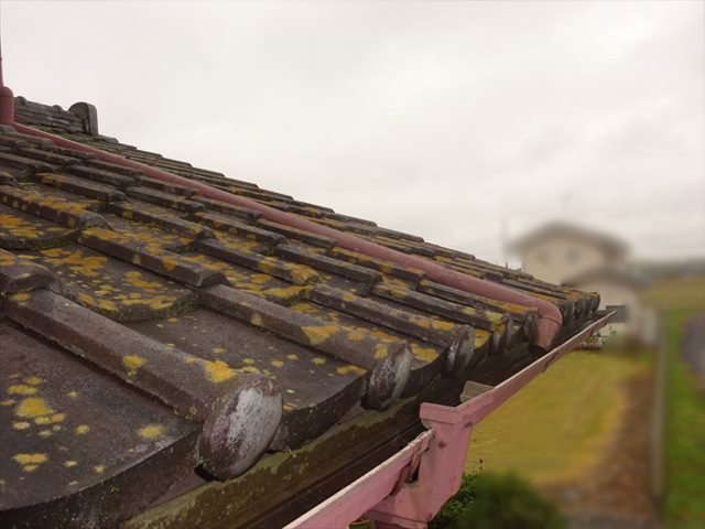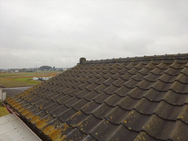 石岡市で屋根塗装。塗膜が劣化して苔だらけのモニエル瓦に遮熱塗装をおこないました