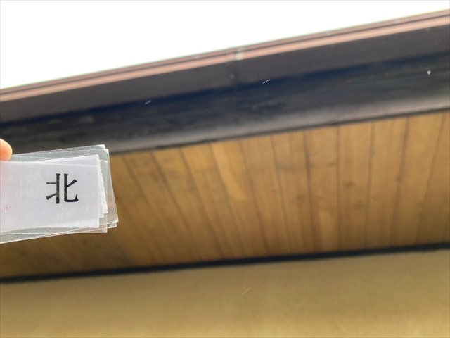 外壁に軒天の塗料がかかっていますが、外壁もこのあとにすべて塗装をするので問題ありません。