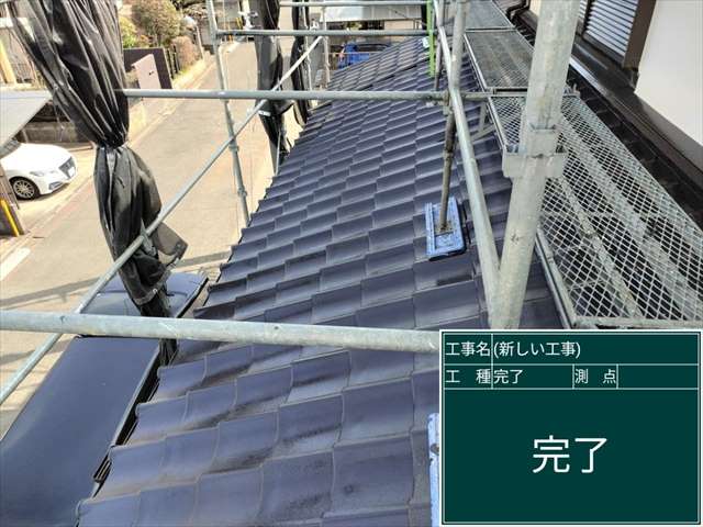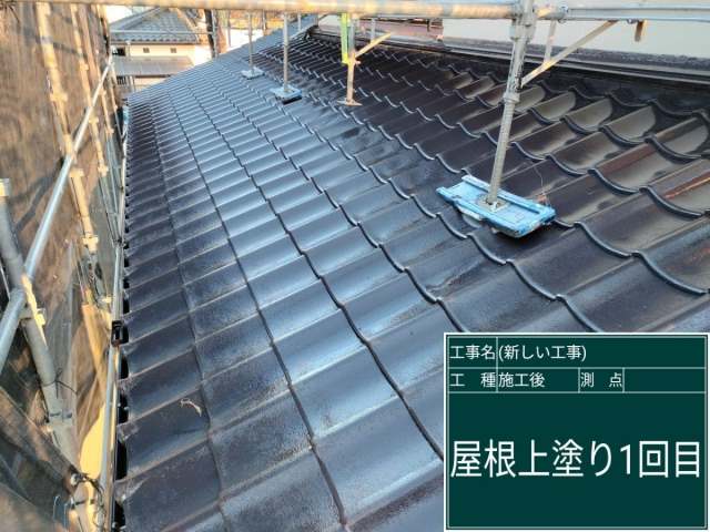 傷んだ瓦の状態に合わせて、下塗りを2回おこなったため、傷んだ瓦が上塗り塗料を吸い込むことなく塗装をすることが出来ました!