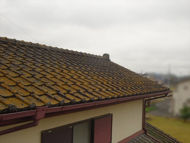 石岡市でモニエル瓦の屋根塗装。苔の生えていたモニエル瓦が遮熱効果のある屋根に!