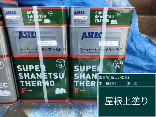 石岡市のモニエル瓦の屋根塗装現場で使用するのは「スーパーシャネツサーモF」です。